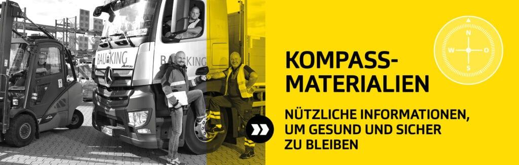 Unterstützt durch den Slogan “Erst denken, sicher Handeln”, bietet das Kompass-Programm Hilfestellungen bei dem Ziel, uns vor arbeitsbedingten Erkrankunden zu schützen. Es geht darum, das Risiko von Unfällen bei unserer täglichen Arbeit und damit verbundene Verletzungen zu minimieren und unsere Gesundheits- und Sicherheitskultur nachhaltig zu verbessern.