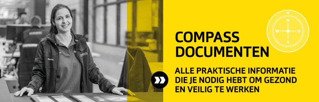 Met de pay-off ‘Denk eerst, werk veilig’ wijst het nieuwe Health & Safety Compass-programma ons de weg om fysiek gezond te blijven. Met als doel het risico van ongevallen – en het daardoor veroorzaakte letsel – zoveel mogelijk te beperken bij het uitvoeren van ons dagelijks werk. En het verbeteren van een langdurige inzetbaarheid.